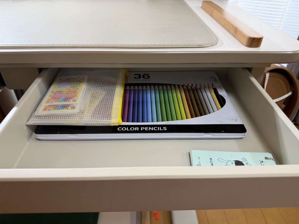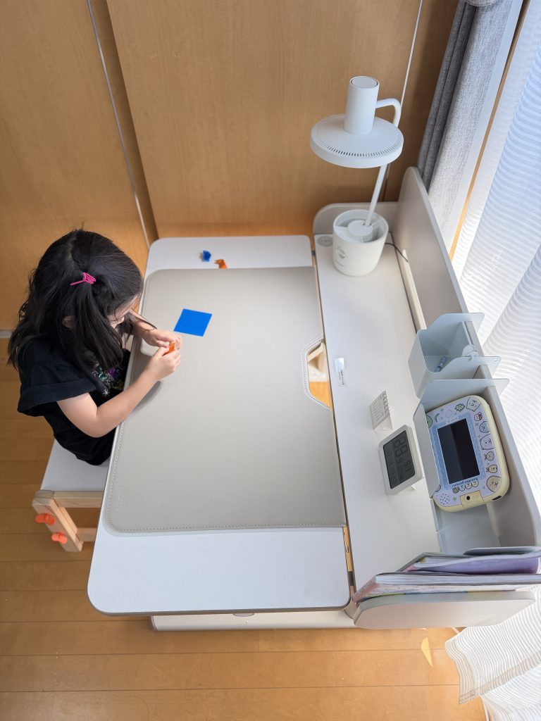 いま使っているのは、保育園時代に買ったIKEAのキッズデスク。