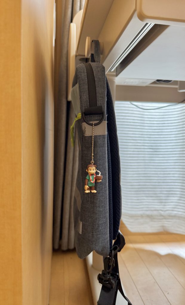 その他、左右にカバンを引っ掛けられるフックがあり、現在はランドセルと公文のカバン用になっています。