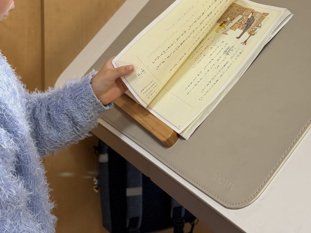 水平から45度まで角度調整ができ、我が家では長女が宿題の音読をするときに使っています。