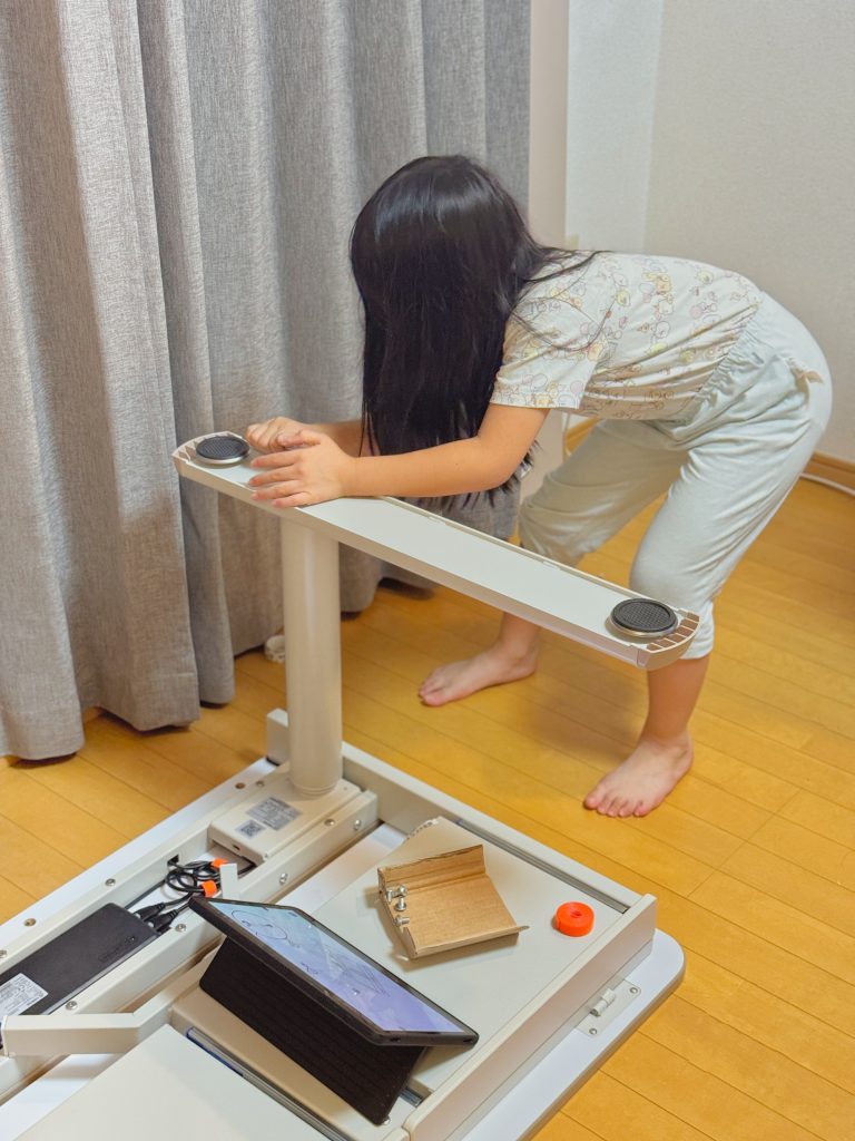 改めて、気軽に高さを調整できる子ども用電動昇降デスク(=学習机)の便利さを感じました。