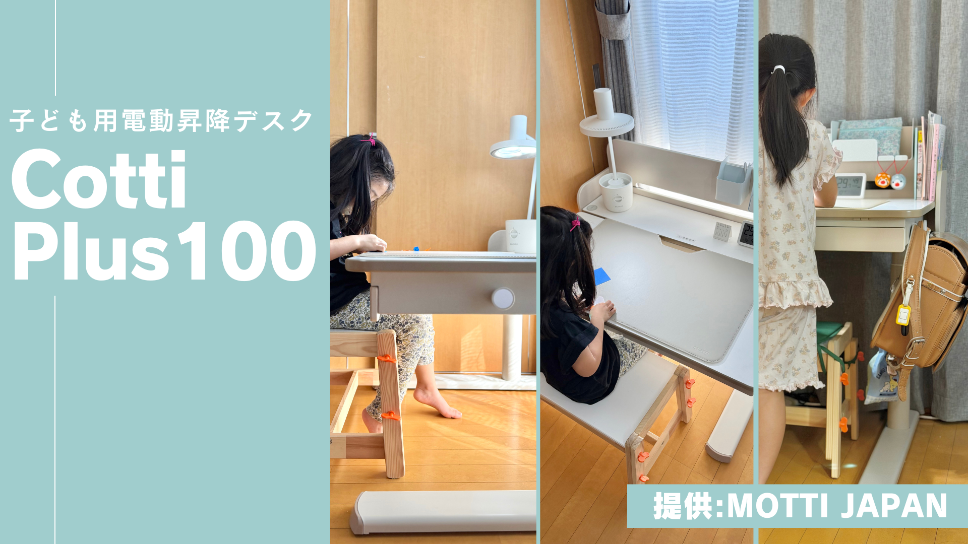 MOTTI さんとご縁をいただき、今回レビューする 子ども用昇降デスク「MOTTI Cotti Plus 100」 を提供いただきました。